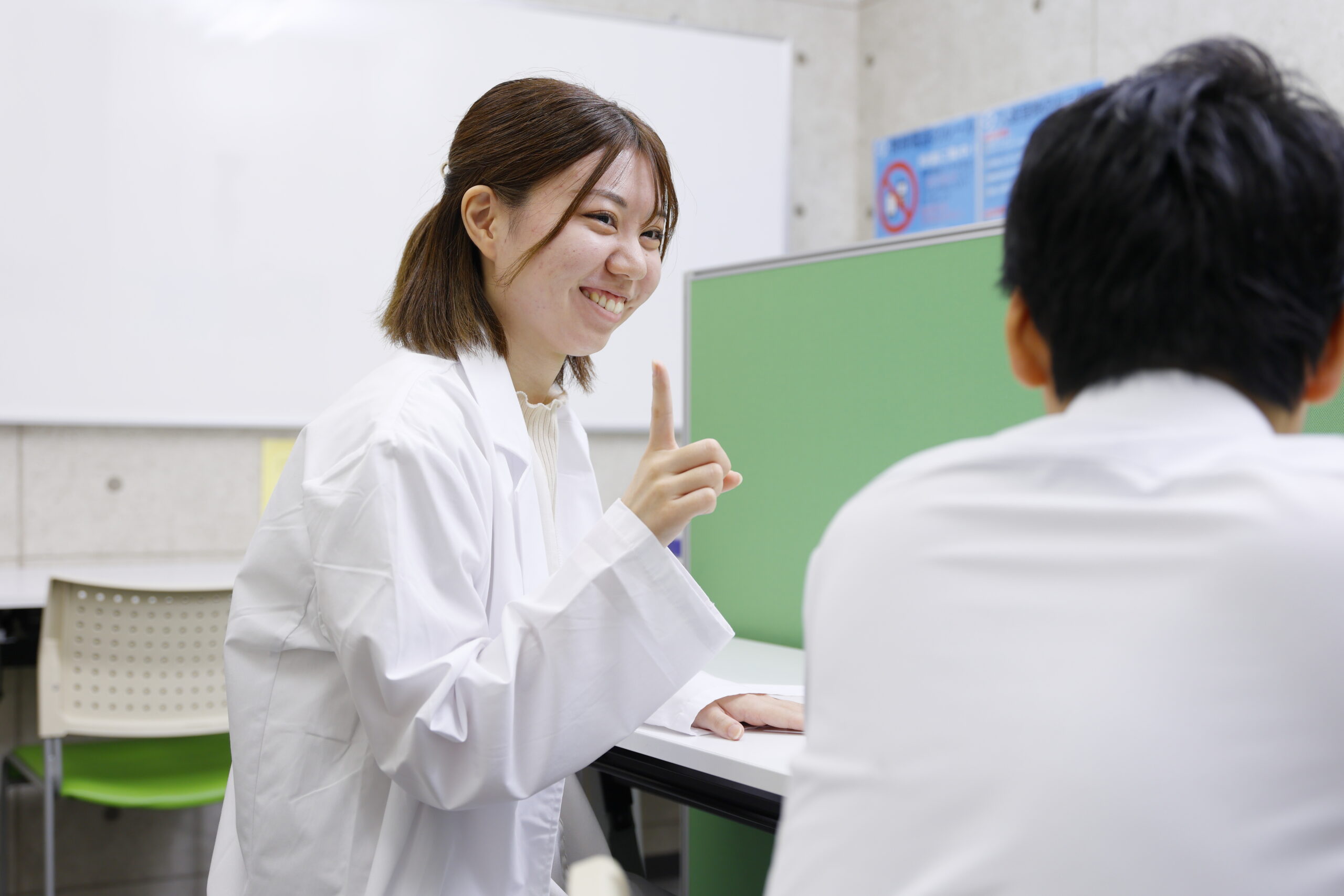 教室はカラフルな教室ながらも生徒や働いているスタッフが集中しやすい環境です。また個別指導ですので、学生の方が授業を担当するため、明るく活気のある空間となっています。教室の責任者はオフィスカジュアルが基本で、講師の先生方は私服の上に指定の白衣とネームプレートを着用した姿で勤務していますので、学習サービスを提供していますが、必要以上に堅苦しかったり重苦しいということはなく過ごしやすい雰囲気で勤務することができます♪